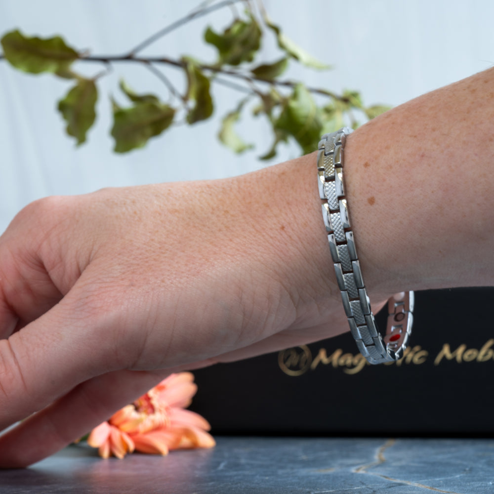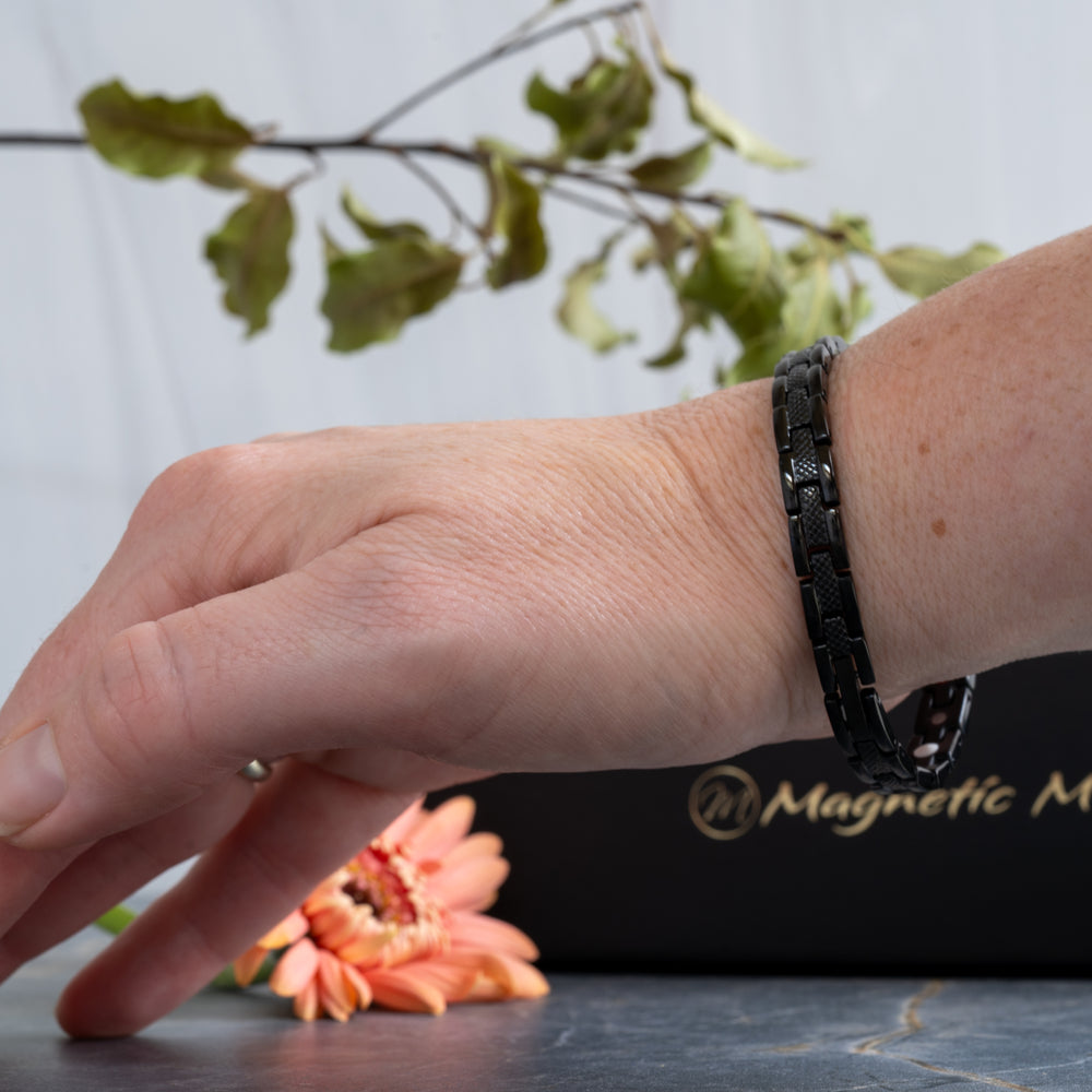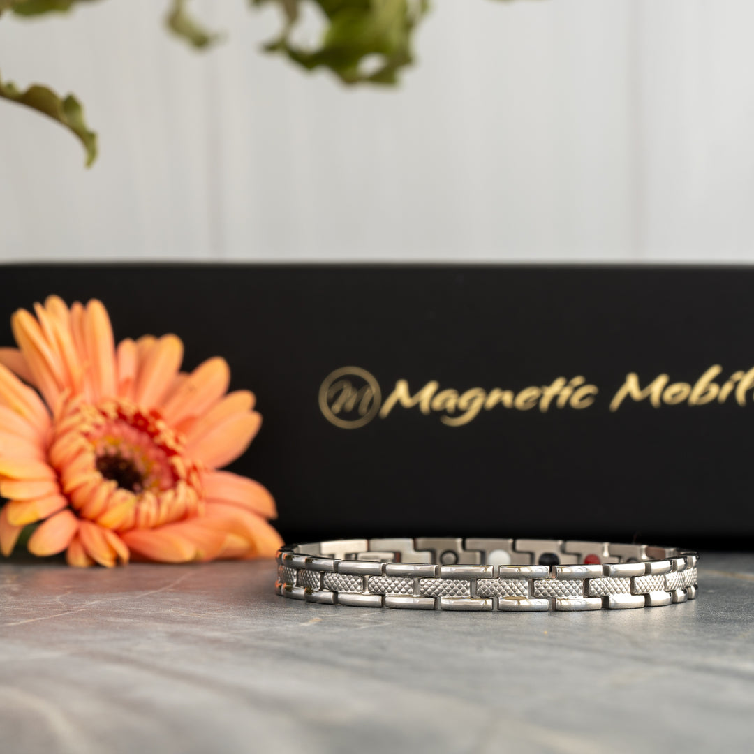 Our 4in1 Magnetic Bracelets are crafted from stainless steel with a secure clasp and are available in multiple sizes to fit your wrist perfectly. These bracelets combine four powerful elements: neodymium magnets, far infrared (FIR) elements, germanium, and negative ions. These elements work together to support increased blood flow and oxygen levels, helping the body reduce inflammation and pain associated with Golfer's Elbow. Additionally, these bracelets promote better sleep patterns, aiding in overall recovery and well-being.