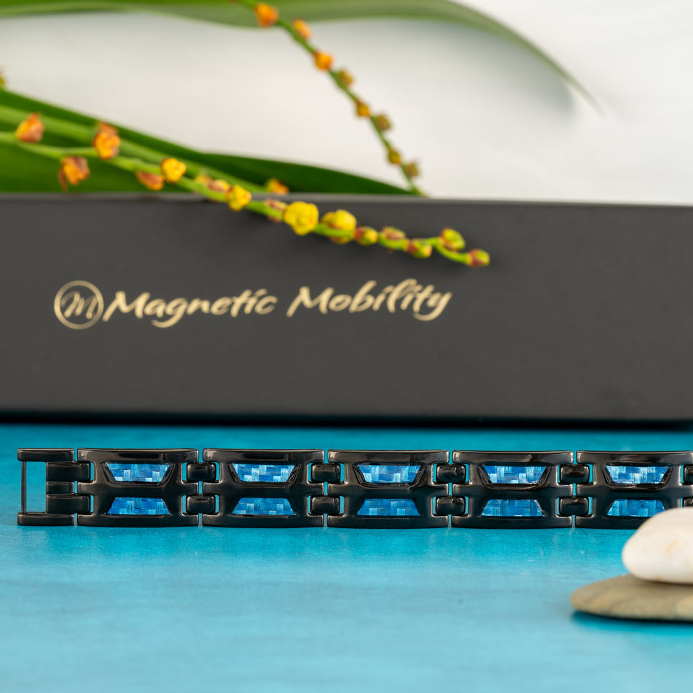 Introducing our sleek and stylish men's magnetic bracelet, perfect for any occasion! Crafted from high-quality stainless steel, this bracelet features a bold black colour and a striking blue carbon inlay, creating a unique and eye-catching design.