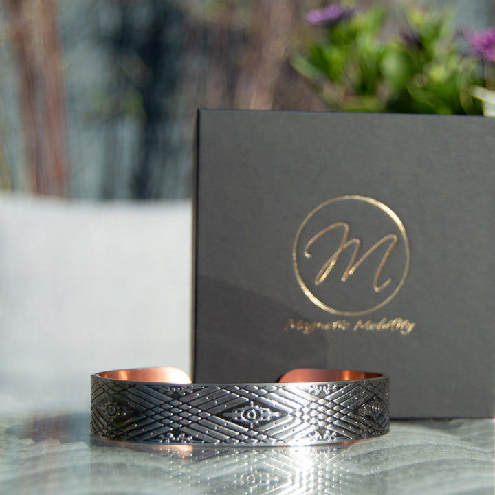 But this bracelet offers more than just sartorial elegance. Copper, revered for its anti-inflammatory properties, stands ready to address challenges such as arthritis, enduring back pain, or daily aches. The Silver Hawthorn Copper Bracelet is not just a piece of jewellery—it's a testament to enduring style and unwavering strength. Perfect for those who value tradition intertwined with relief.