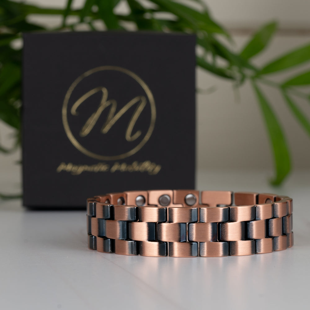 It's also important to remember that copper jewellery, including our copper magnetic bracelets, may cause a green or black colouration on your skin and on the copper parts in contact with your skin. This is a natural oxidation process and completely normal. The colouration will typically wash off with soap and water, so there's no need to worry if you notice this happening.