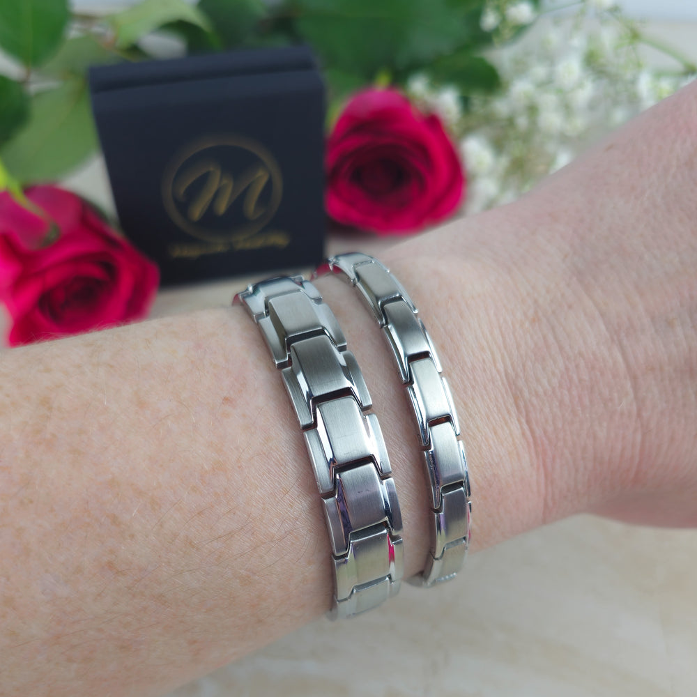 Illuminate your connection this Valentine’s Day with The Starry Pair, a set of 4in1 Magnetic Bracelets crafted for couples who value both style and wellness. With their matching silver tones and elegant designs, these bracelets are the perfect way to celebrate love and togetherness.